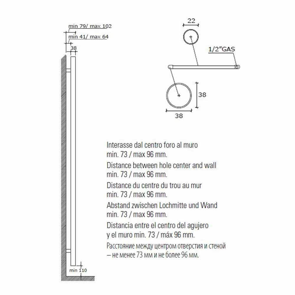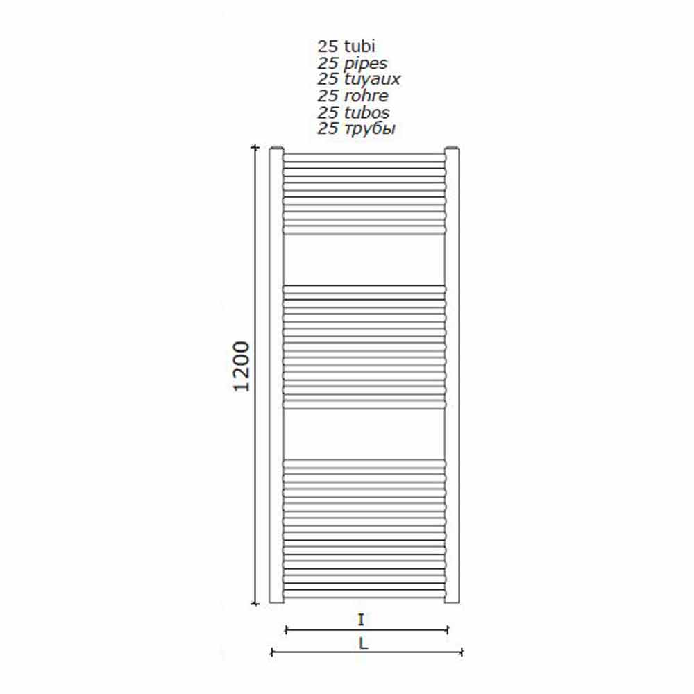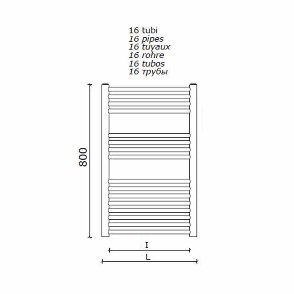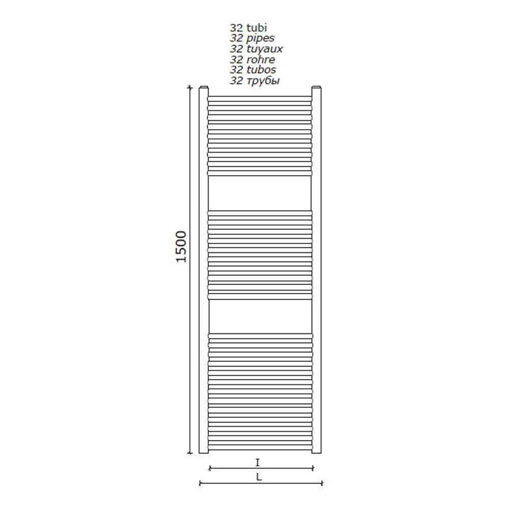 Handtuchwärmer-Heizkörper aus Edelstahl für das Badezimmer, vertikale Wandgestaltung hergestellt in Italien.