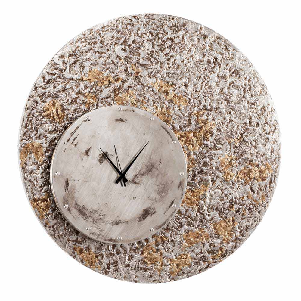 Eccli ist eine Uhr auf zwei Ebenen, die von Hand mit Blattgold und Battsilber auf Material verziert ist.