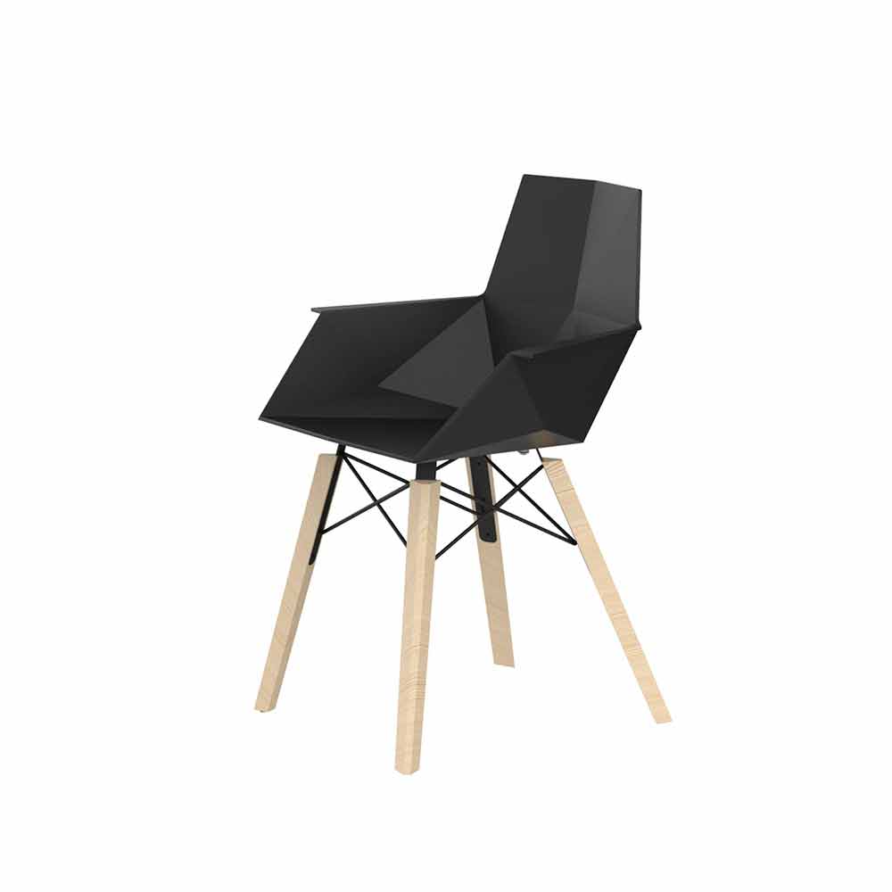 Design Sessel aus Polypropylen mit Struktur aus Eschenholz und Sitz und Rückenlehne aus Polypropylen in verschiedenen Farben.