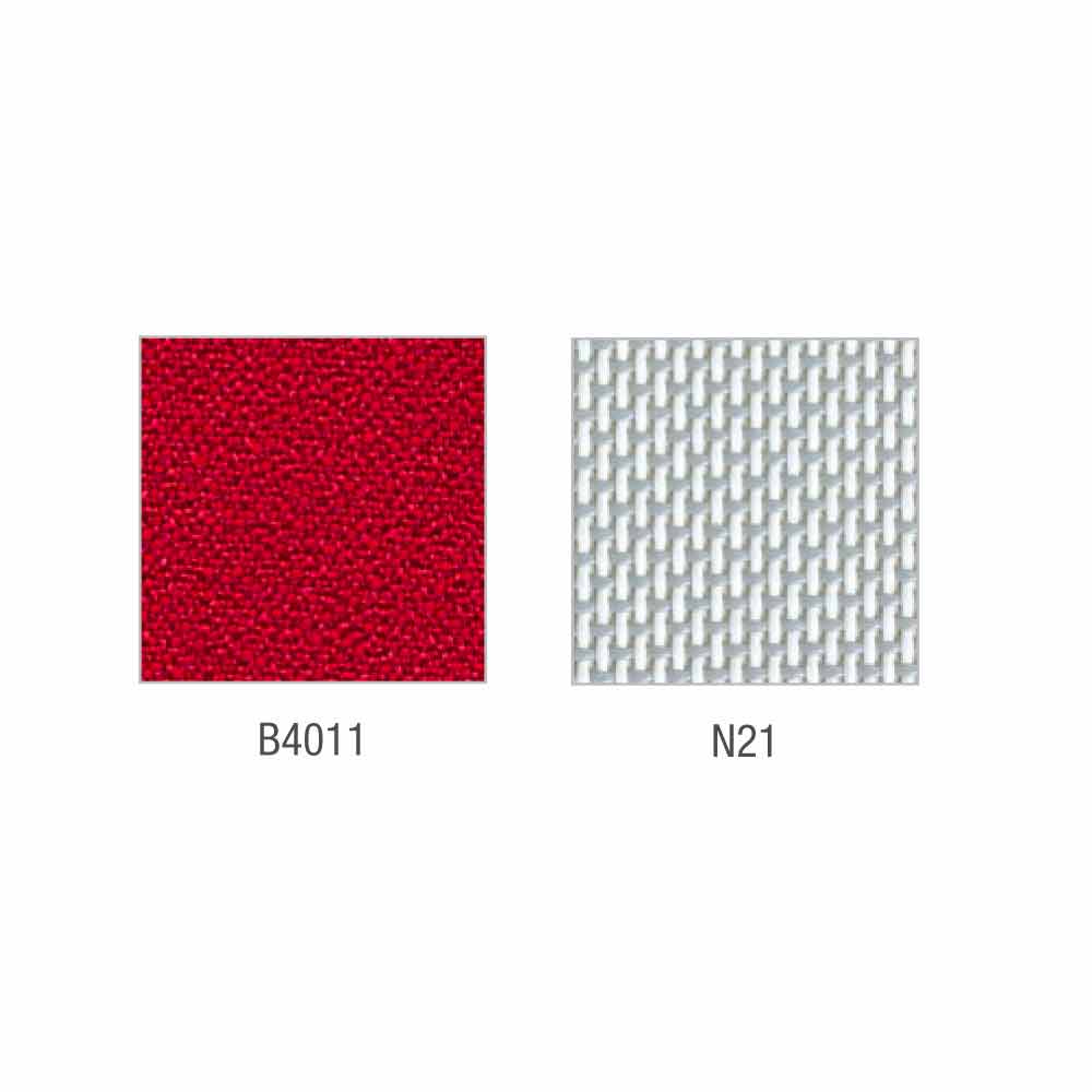 Mina hat eine Rückenlehne aus einem Nylon PA6 Tragrahmen 30% glasfaserverstärkt und eine Polsterung, die über eine seitliche Nut an der Rückenlehne befestigt ist.