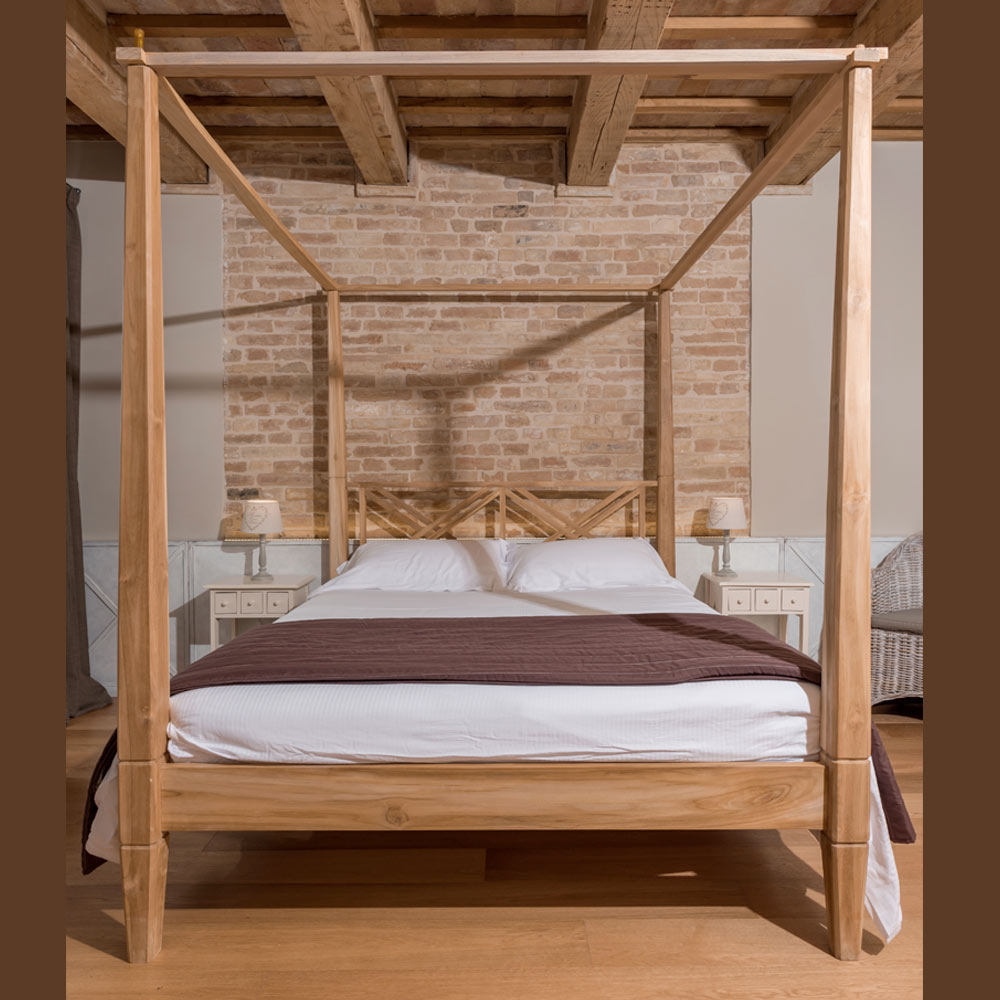 Doppelbett (160 x 200 cm) mit Himmelbett aus massivem Teakholz – Aquarell