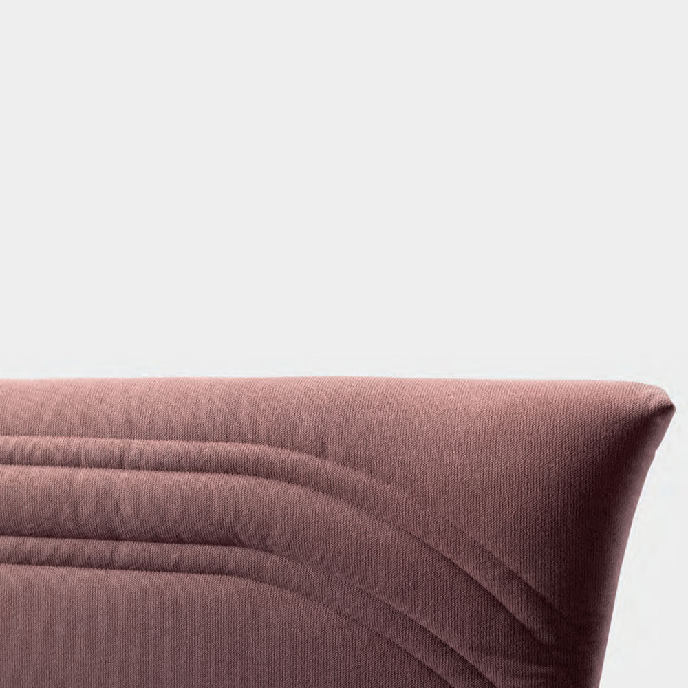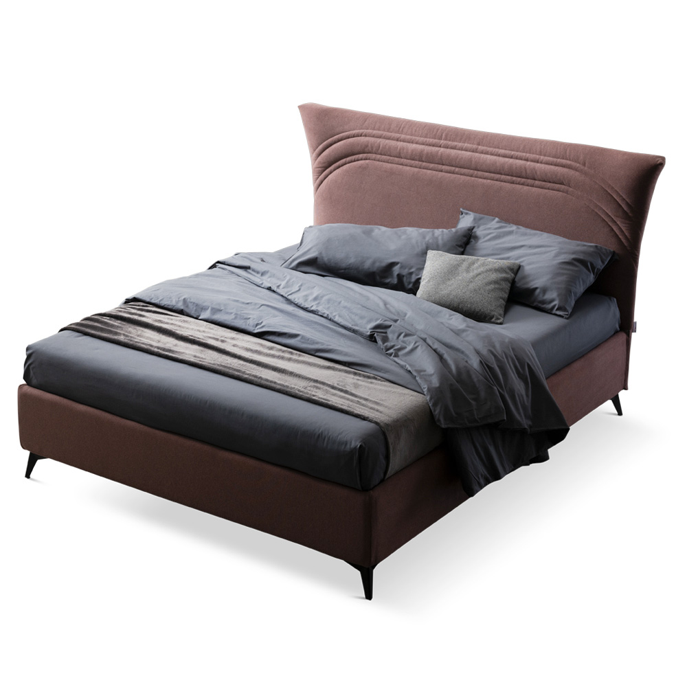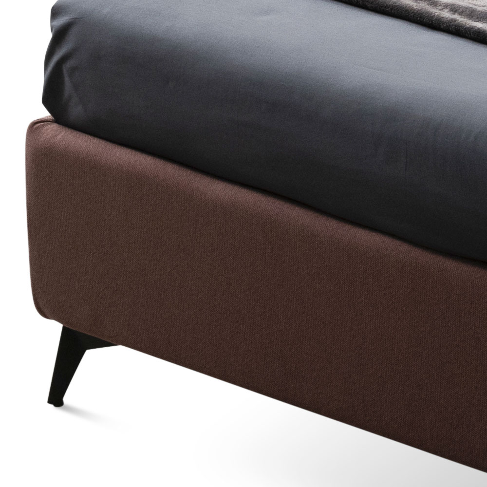 Aufbewahrungsbox, Metallfüßen in Anthrazit-Finish (Höhe 13,5 cm) und einzigartigem und innovativem Kopfteil mit geschwungenen Seiten und einem horizontal verlaufenden doppelten Steppband aus wasserabweisendem und feuerhemmendem Stoff.