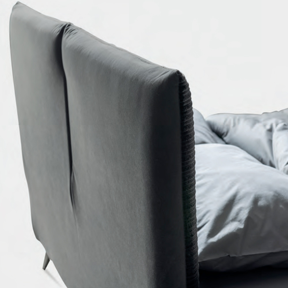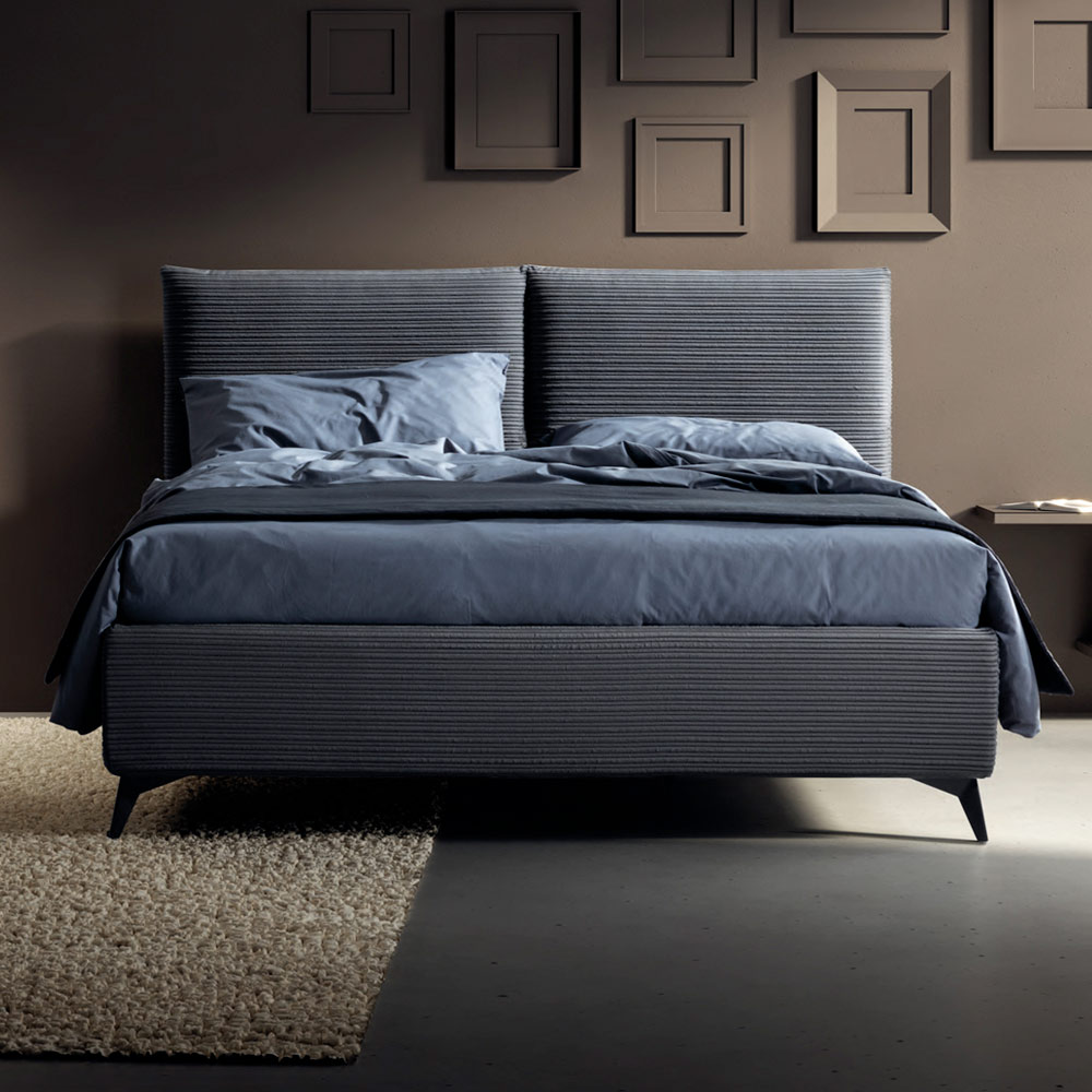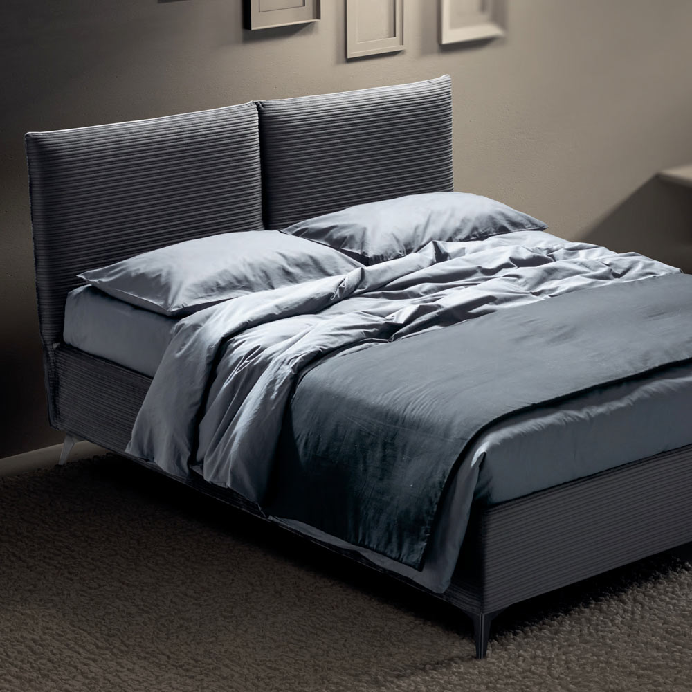 Aufbewahrungsbox, Metallfüßen in Anthrazitoptik (Höhe 13,5 cm) und weichem Kopfteil dank einer speziellen Polsterung in Kissenform; die mittige Unterteilung des Kopfteils verleiht ihm eine besonders klare und angenehme Linie mit einer originellen ästhetischen Wirkung.