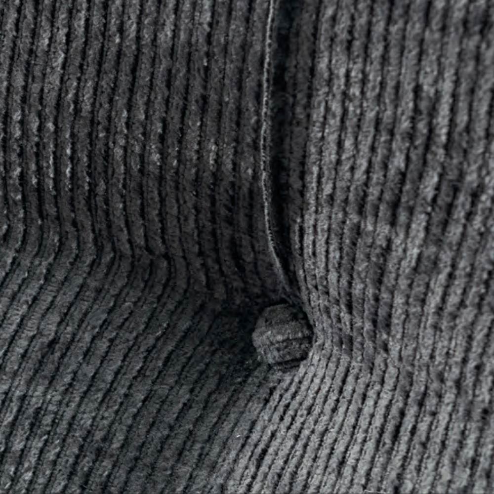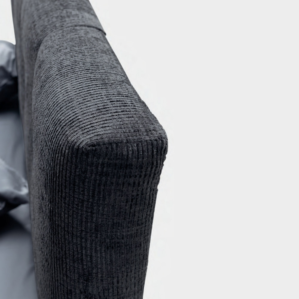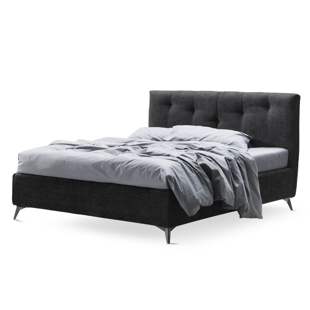 Metallfüßen in Anthrazit-Optik (Höhe 13,5 cm) sowie Kopfteil mit geprägten vertikalen Kordeln, verziert mit einer Steppung aus Knöpfen.