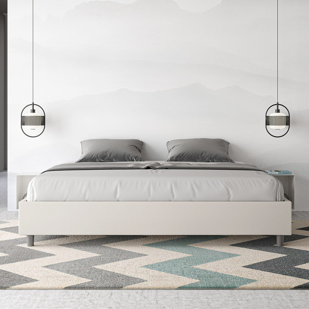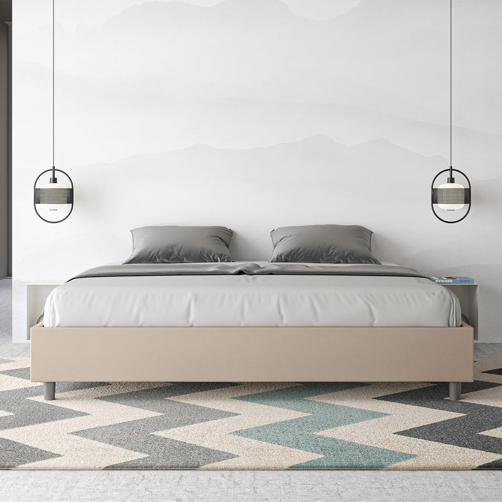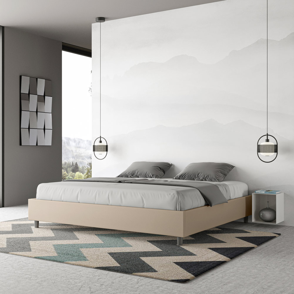 Kingsize-Bett 180x200 cm, gepolstert aus Melaminplatten und mit Kunstleder bezogen, vollständig in Italien hergestellt. Dieses Kingsize-Bett besticht durch sein klares, minimalistisches Design . Seine zurückhaltende Ästhetik und Vielseitigkeit ermöglichen eine mühelose Integration in jedes Ambiente. Ein besonderes Merkmal ist das Fehlen eines traditionellen Kopfteils . Dadurch eignet es sich ideal für die Platzierung an ungewöhnlichen Orten, beispielsweise unter einem Fenster, im Dachgeschoss oder in der Nähe einer dekorativen Wand, ohne die Aussicht zu beeinträchtigen oder den gewünschten Effekt zu erzielen.
