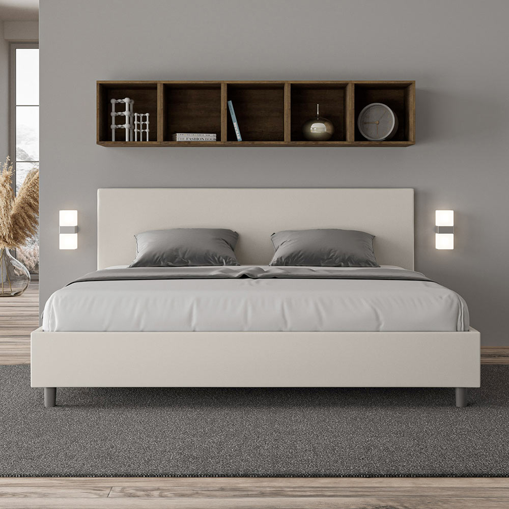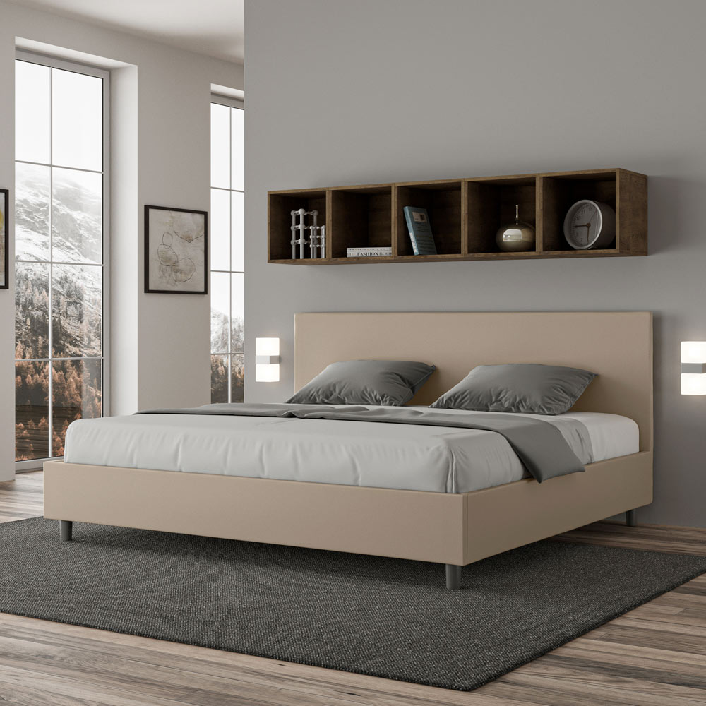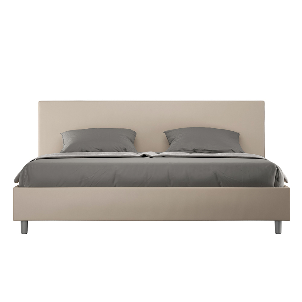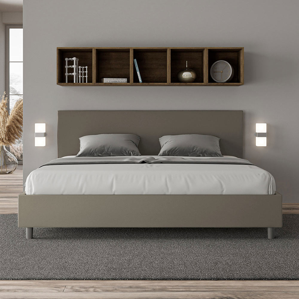 Kingsize-Bett 180x200 cm, gepolstert aus Melaminplatten und mit Kunstleder bezogen, vollständig in Italien hergestellt. Dieses Kingsize-Bett mit gepolstertem Bettrahmen ist ein Inbegriff von schlichter Eleganz. Mit seinem Kopfteil aus Kunstleder fügt es sich harmonisch in jedes Zimmer ein und verleiht ihm einen Hauch von Klasse und Luxus – typisch italienisch. Die Pflege ist kinderleicht: Einfach mit einem Mikrofasertuch abwischen, um die Schönheit des Bettes dauerhaft zu erhalten.