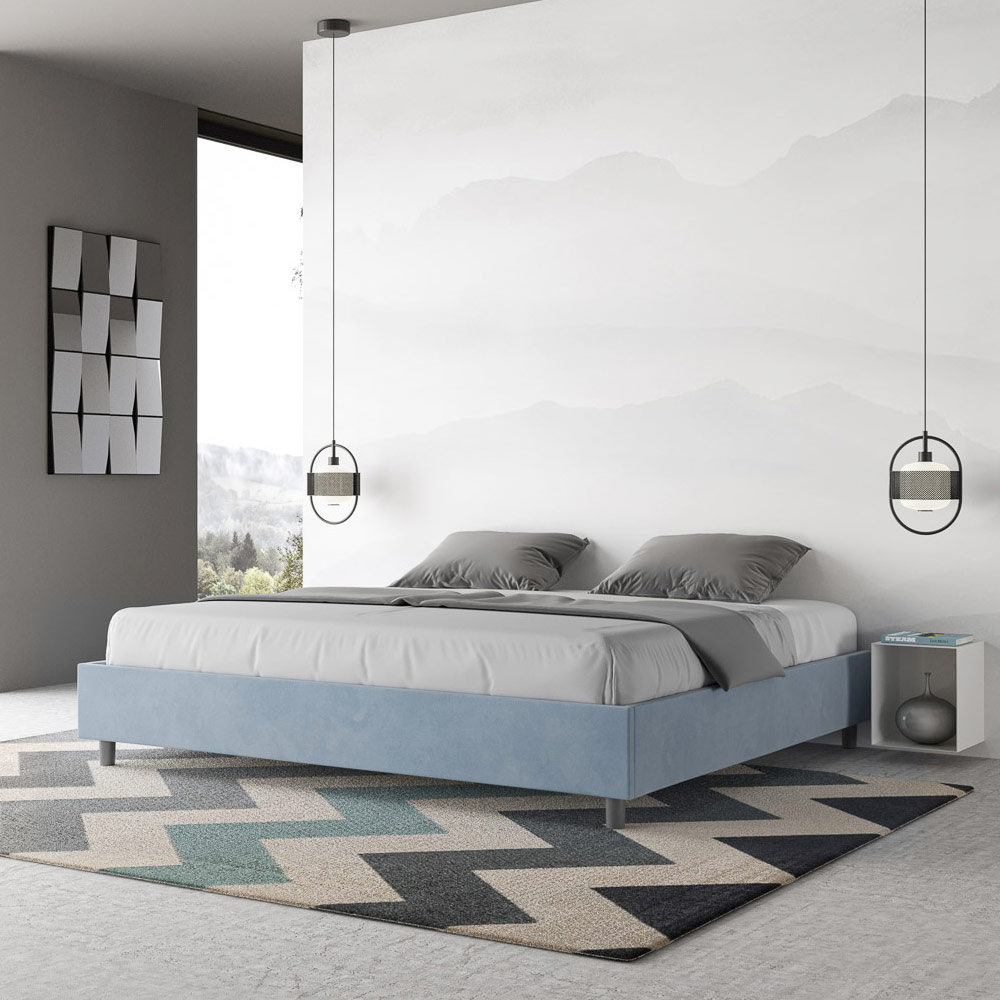 Kingsize-Bett 190x200 cm, gepolstert aus Melaminplatten und mit Mikrofaser bezogen, vollständig in Italien hergestellt. Dieses Kingsize-Bett besticht durch sein klares, minimalistisches Design . Seine zurückhaltende Ästhetik und Vielseitigkeit ermöglichen eine mühelose Integration in jedes Ambiente. Ein besonderes Merkmal ist das Fehlen eines traditionellen Kopfteils . Dadurch eignet es sich ideal für die Platzierung an ungewöhnlichen Orten, beispielsweise unter einem Fenster, im Dachgeschoss oder in der Nähe einer dekorativen Wand, ohne die Aussicht zu beeinträchtigen oder den gewünschten Effekt zu erzielen.