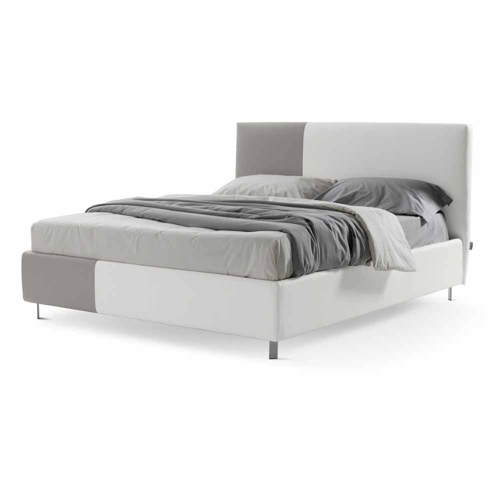 Doppelbett mit luxuriösem Container aus zweifarbigem grauem und weißem Ökoleder, handgefertigt in Italien.