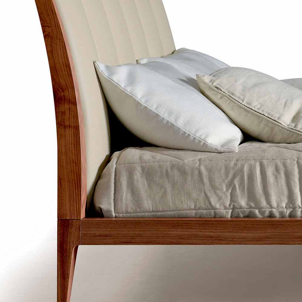 Hochwertige Materialien und Realisierung made in Italy sind die Hauptelemente, die das Doppelbett Menardo charakterisieren. Das Bett ist im Kopfteil und in den Beinen aus Massivholz gefertigt, die Holme, die aufgrund ihrer Länge von mehr als zwei Metern nicht brechen dürfen, sind aus Tischlerplatten (zusammengefügtes, aber kleineres Massivholz), die dann mit einem Nussbaumfurnier überzogen werden. Die spezielle Ölbeschichtung bringt mehrere Vorteile mit sich. Im Vergleich zu herkömmlichen Lacken heben Produkte auf Basis von natürlichem Leinöl die Maserung und die Eigenschaften des Holzes hervor. Wenn sie mit der Holzfaser in Berührung kommen, kristallisieren sie, besetzen die Poren der Holzfaser und bilden gleichzeitig eine Barriere für die Aufnahme von Flüssigkeiten (z.B. Schmutz) und erhöhen die mechanische Festigkeit der Holzfaser. Dieses Öl ist außerdem wasserabweisend und resistent gegen Witterungseinflüsse und UV-Strahlung. Es ist also eine Alternative, die nicht nur natürlich und ökologisch ist, sondern auch erhebliche Verbesserungen bringt.