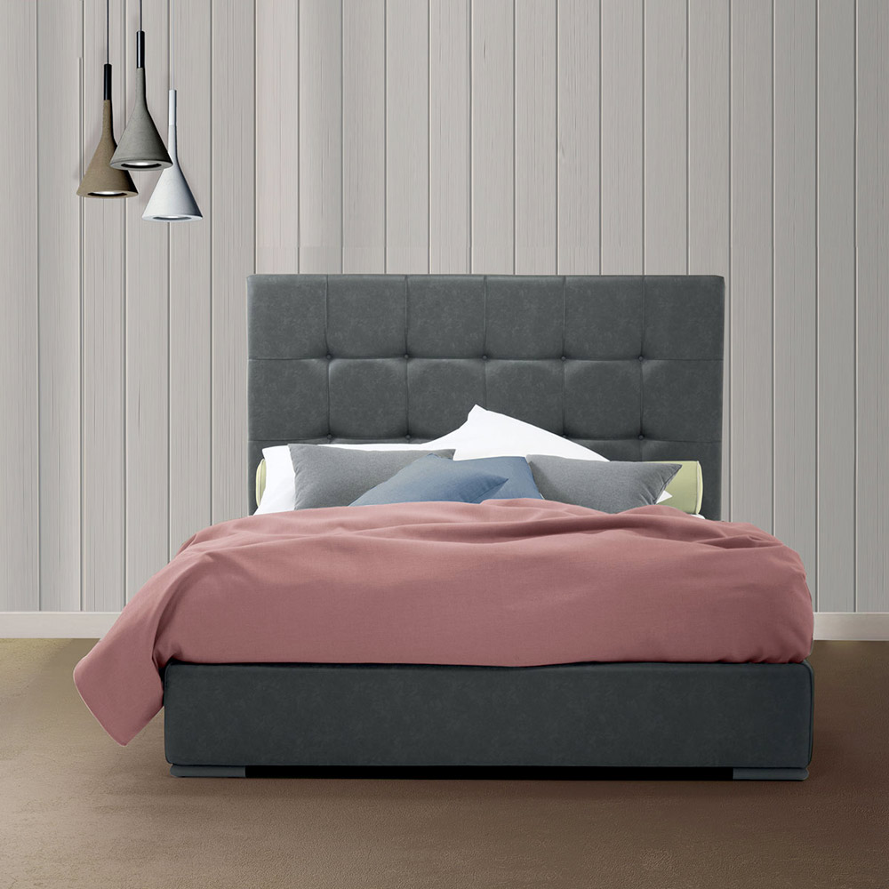 zahlreiche Möglichkeiten zur individuellen Anpassung, sowohl was die Abmessungen als auch die Art der Beschichtung anbelangt. Tatsächlich steht eine große Auswahl an Stoffen, Ledern und Öko-Leder zur Auswahl. Das Bett kann auch in der Version ohne Container erworben werden. Für Beratung und / oder personalisierte Angebote