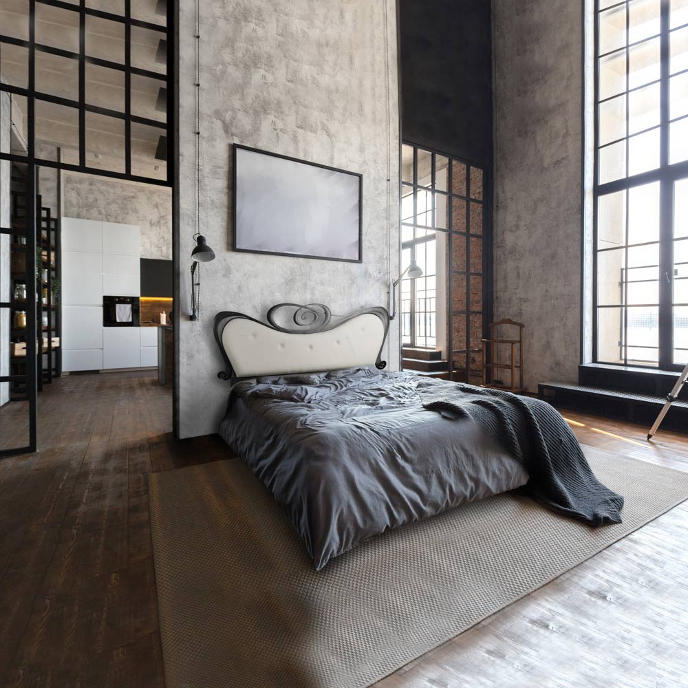 Pulverbeschichtung. Bett mit weichen und geschwungenen Profilen, die dem Raum optische Wirkung und Leichtigkeit verleihen. Dieses Produkt kann in jeden Einrichtungsstil eingefügt werden und erfüllt unterschiedliche Anforderungen an Design, Funktionalität und Qualität.