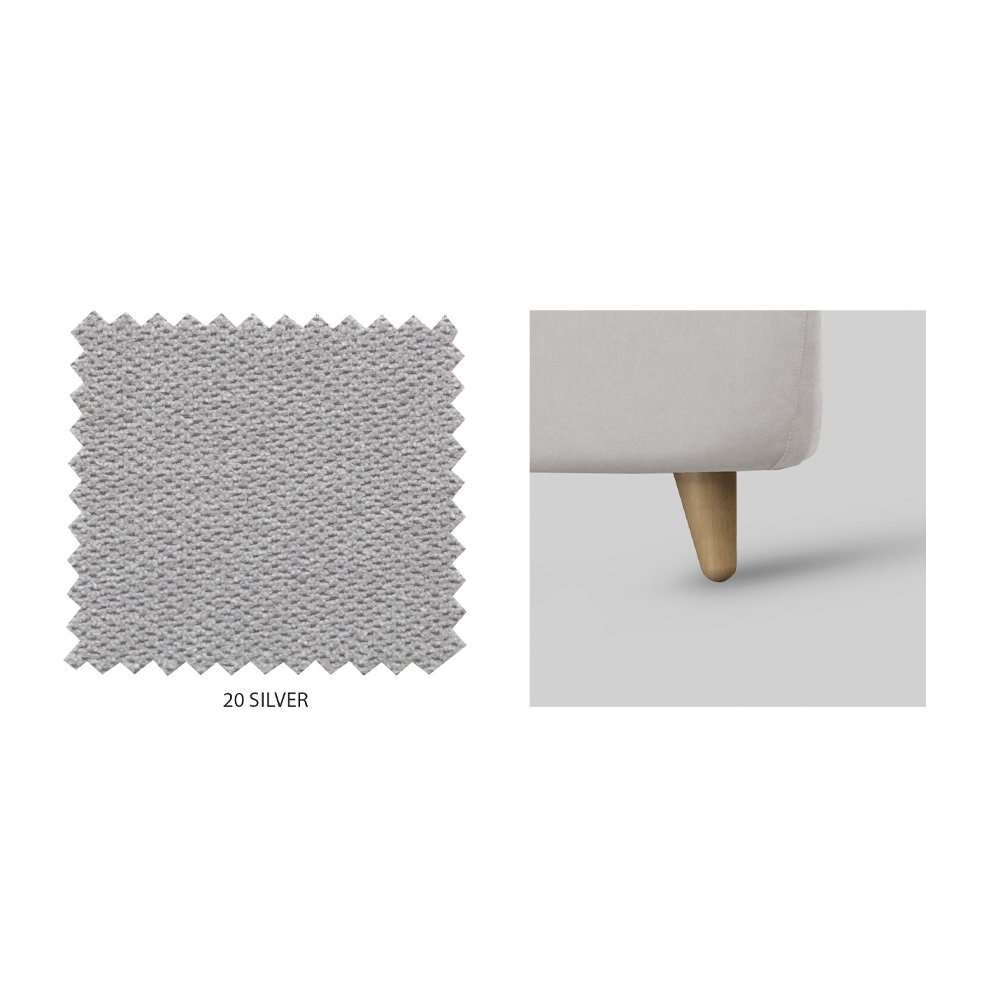 - silberner Stoff mit natürlichen Holzfüßen