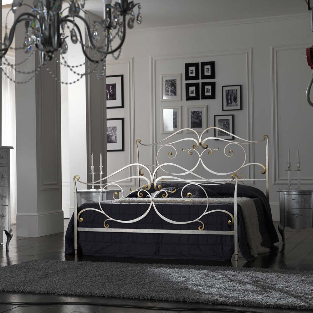 Pulverbeschichtung oder handgemachter Blättermalerei versehen. Produkt mit klassischem und zeitlosem Stil, das elegante und raffinierte Oberflächen mit der Qualität der Materialien kombiniert und so ein einzigartiges Bett schafft.