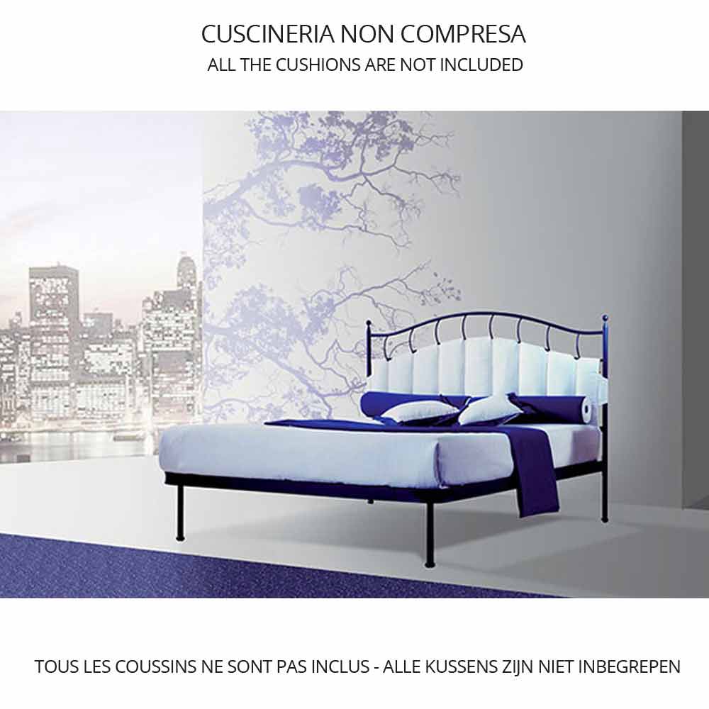 Das schmiedeeiserne Bett in der Variante DOPPELTES KOPFTEIL MIT WANDBEFESTIGUNG erfordert den Einbau eines 160 cm langen Bettgestells, das von eigenen Beinen getragen werden muss. Bei besonderen Anforderungen in Bezug auf die körperliche Konstitution, die Kombination mit vorhandenen Bettgestellen oder einfach aus ästhetischen Gründen kann dieses Modell dank unserer handwerklichen Produktivität in Höhe und Breite verändert werden.