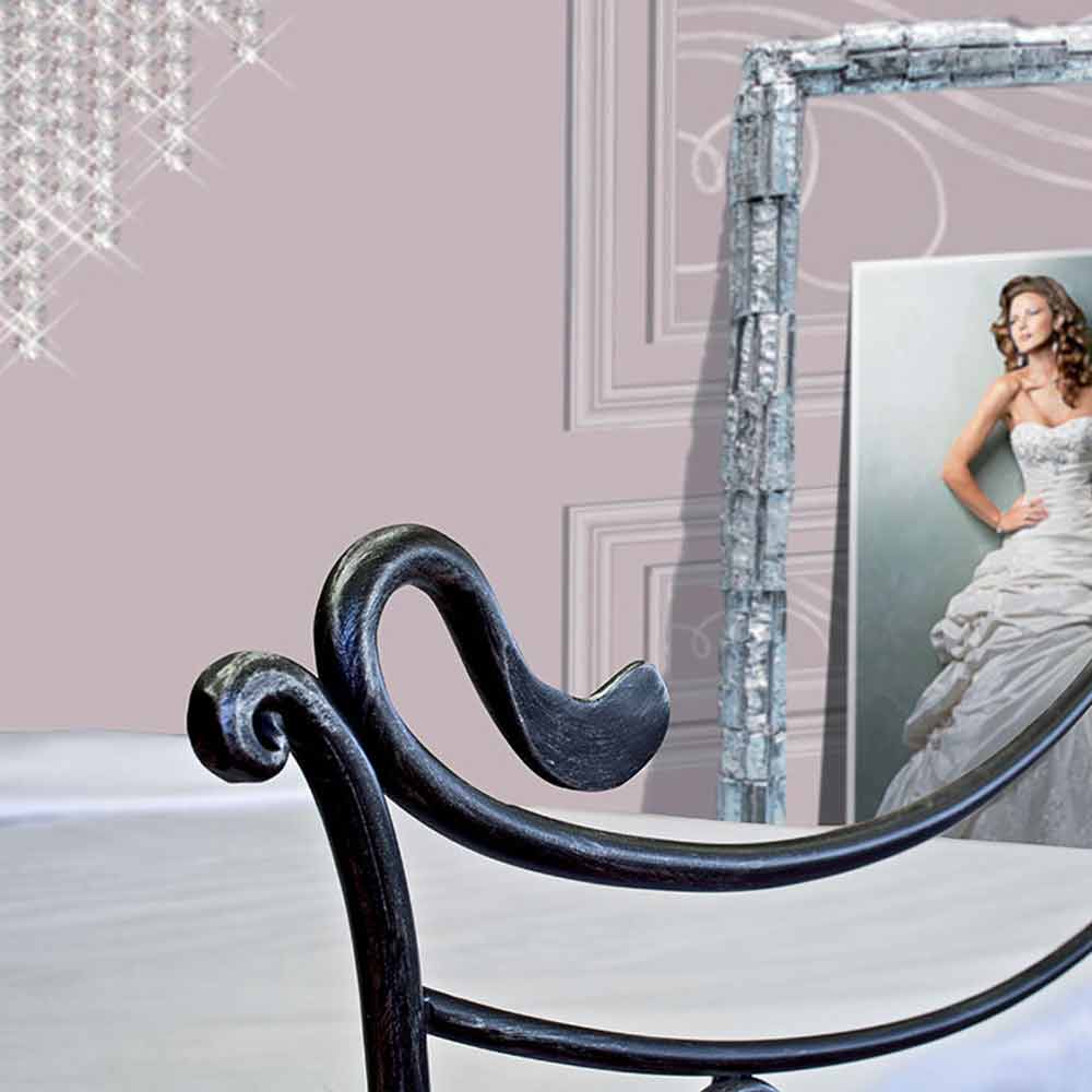 Das schmiedeeiserne Bett in der Variante DOPPELTES KOPFTEIL MIT WANDBEFESTIGUNG erfordert den Einbau eines 160 cm langen Bettgestells, das von eigenen Beinen getragen werden muss. Bei besonderen Anforderungen in Bezug auf die körperliche Konstitution, die Kombination mit vorhandenen Bettgestellen oder einfach aus ästhetischen Gründen kann dieses Modell dank unserer handwerklichen Produktivität in Höhe und Breite verändert werden.