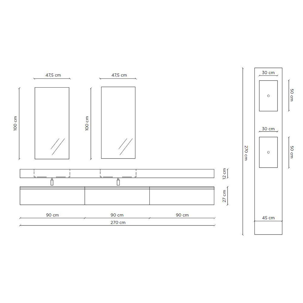 Doppelte Badezimmerkomposition mit rechteckigem Spiegel und Waschbecken, hergestellt in Italien – Palom