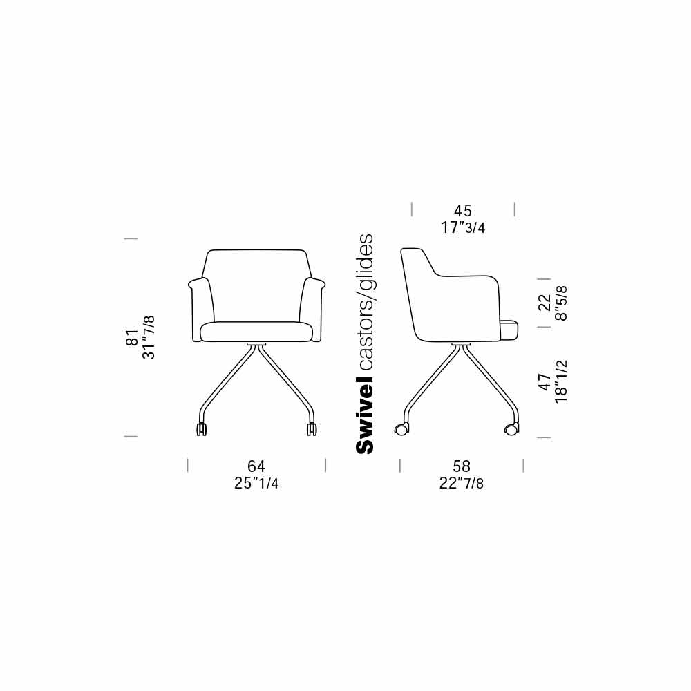 Drehbarer Bürostuhl mit Rollen und Armlehnen made in Italy.