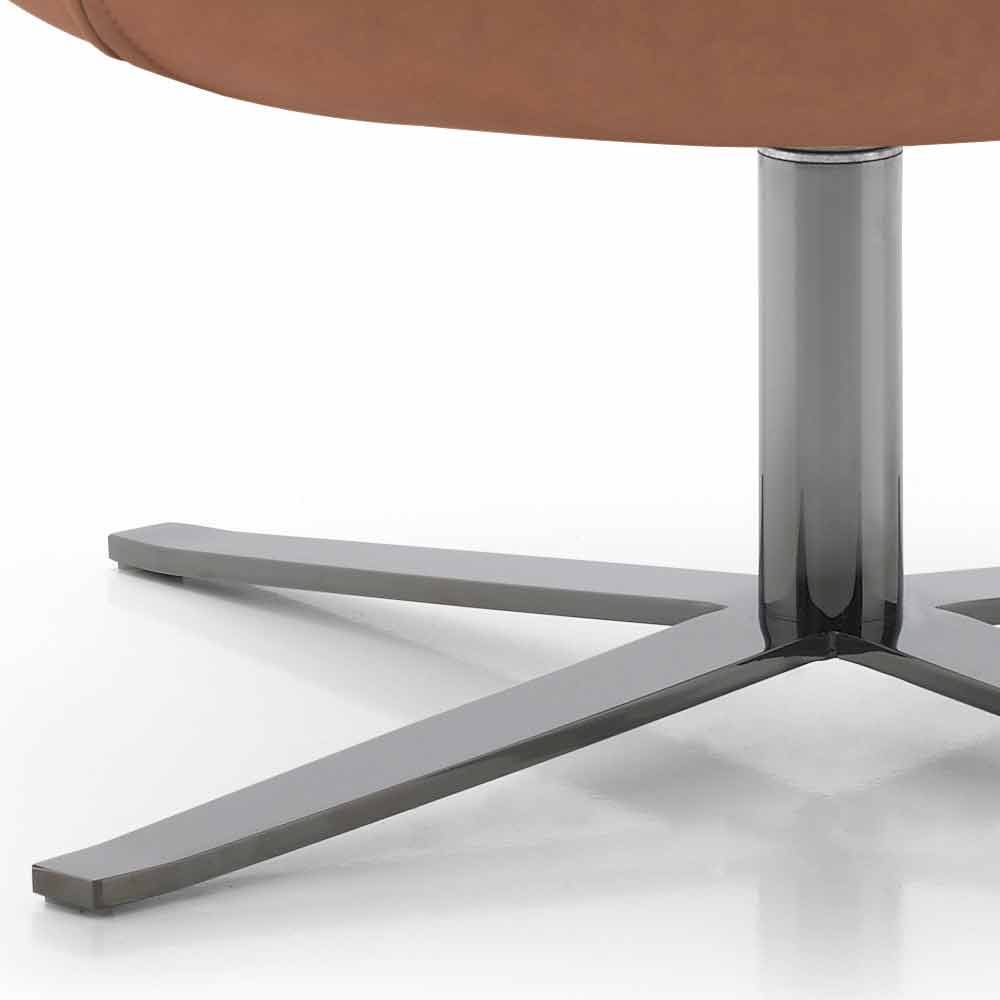 Wohnzimmersessel mit Innenstruktur aus Stahl, geformt aus kaltgeschäumtem Polyurethan und mit Leder und Stoff bezogen und Drehgestell aus Metall. Dieser Sessel, der zu 100 % in Italien hergestellt wird , entstand aus dem Wunsch heraus, eine Ergänzung zu bieten, die optimalen Komfort gewährleistet und gleichzeitig die umgebende Einrichtung mit Persönlichkeit und Eleganz bereichert. Ein exklusives Design, das sich durch umhüllende und komfortable Linien und Formen auszeichnet, die einen ebenso funktionalen wie raffinierten Sitz mit einer raffinierten Ästhetik zum Leben erwecken. Der drehbare Sockel bereichert seinen Stil noch mehr und macht ihn zu einer perfekten Lösung für das Büro, während die Struktur, die durch die Verwendung hochtechnischer Materialien geschaffen wurde , dazu beiträgt, dass Sie sich "endlich zu Hause" fühlen, wenn Sie es brauchen, um das ultimative In . zu erreichen Entspannung.