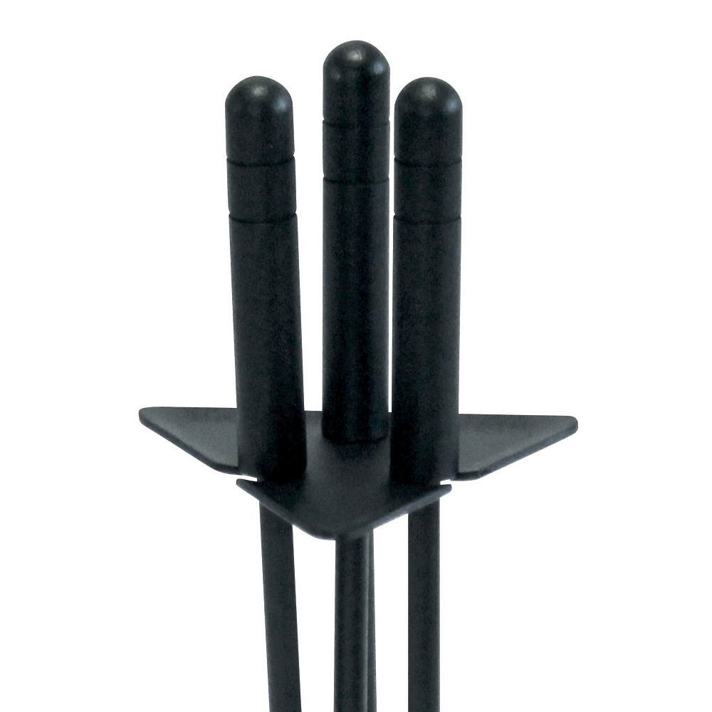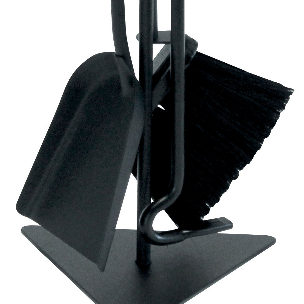 Die dreieckige Basis bietet eine solide Grundlage für das Set und stellt sicher, dass die Werkzeuge aufrecht und einsatzbereit bleiben. Dieser Werkzeughalter ist nicht nur praktisch, sondern auch ein Designelement, das von Liebe zum Detail und Sorgfalt für die häusliche Umgebung zeugt und ihn zu einem unverzichtbaren Accessoire für jeden Kaminliebhaber macht.