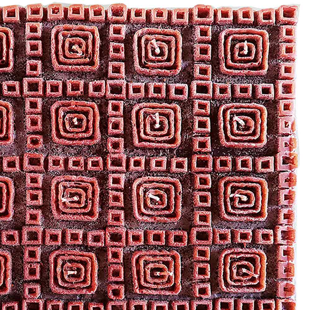 Diese Kerzenlinie zeichnet sich durch den auf den ersten Blick sichtbaren ethnischen Geschmack aus . Sie sind in der Tat eine perfekte und sorgfältige Reproduktion traditioneller indischer Drucke, bei denen die auf den Kerzen eingravierten Texturen akribisch die alten ethnischen Stoffe darstellen. Jedes Produkt ist somit ein echtes Kunstwerk, das durch sein ungewöhnliches, aber elegantes Design gleichzeitig eine Geschichte erzählt.