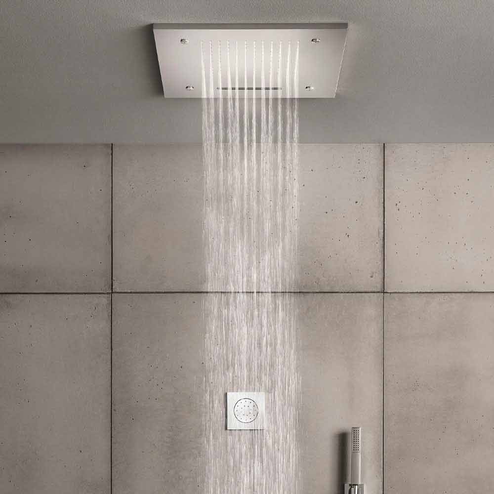 Moderner Duschkopf aus Edelstahl mit Farbtherapie, hohe Qualität, Made in Italy.