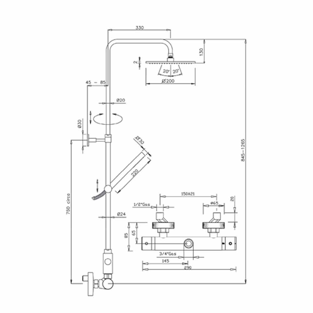 Eigenschaften:- Duschsäule aus verchromtem Messing;