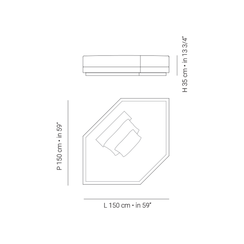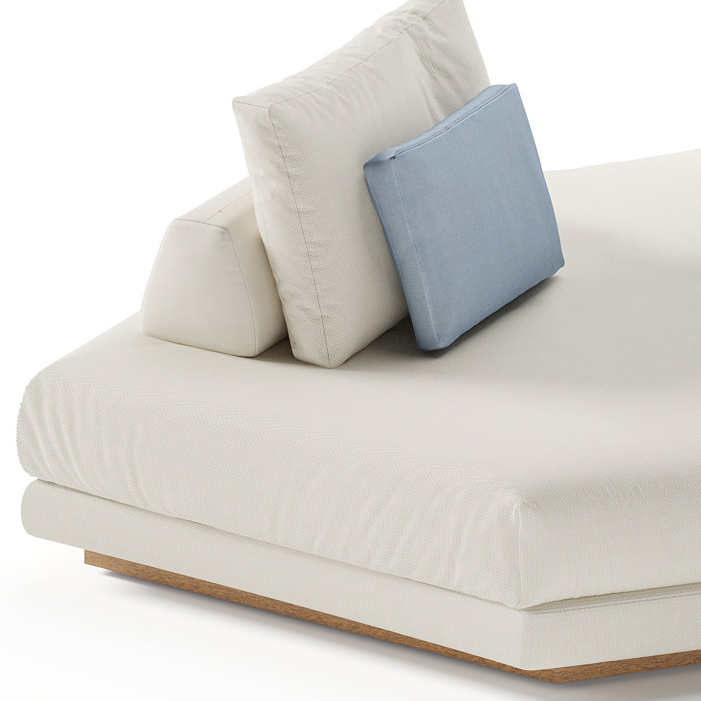 Eck-Gartenchaiselongue, vollständig in Italien hergestellt , mit Sitz und Rückenlehne aus Stoffpolsterung . Das Produkt besteht aus einem niedrigen und tiefen Sitz und wird dank seiner Form zu einem einladenden und einladenden System, das eine entspannte und informelle Atmosphäre schaffen soll. Diese Eck-Chaiselongue ist perfekt, um jede Umgebung einzigartig zu machen, und bietet die Freiheit, Ihre Wohnräume mit Geschmack und Stil neu zu gestalten. Dank seiner einfachen und linearen Oberflächen garantiert es Eleganz und Raffinesse für jede Umgebung, in der es platziert wird. Das Rückenkissen ist abnehmbar und kann beliebig am Produkt positioniert werden.