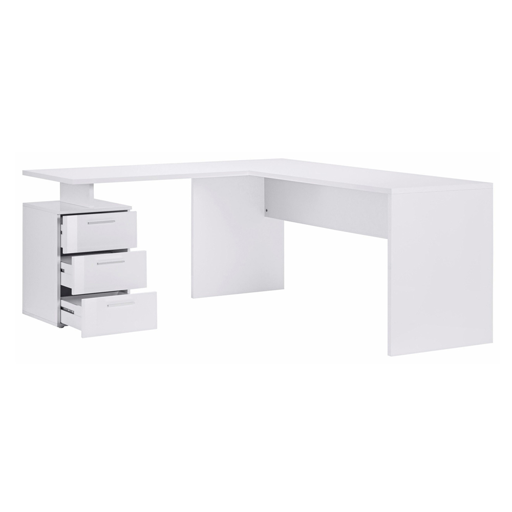 Kommode mit 3 Schubladen aus. Der Schreibtisch ist in zwei Ausführungen erhältlich und lässt sich leicht