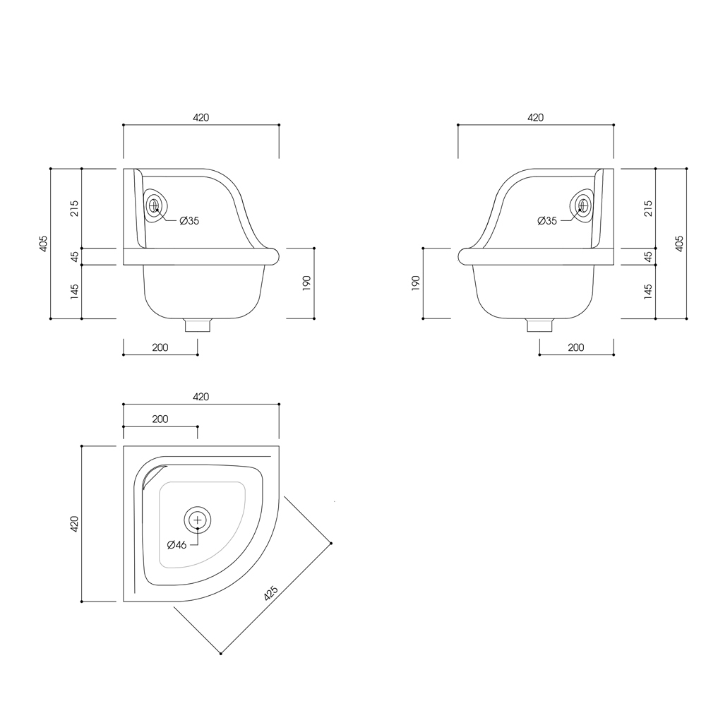 NB: Wasserhahn, Abfluss und Siphon ausgeschlossen. Das Waschbecken wird mit einem Hahnloch geliefert.