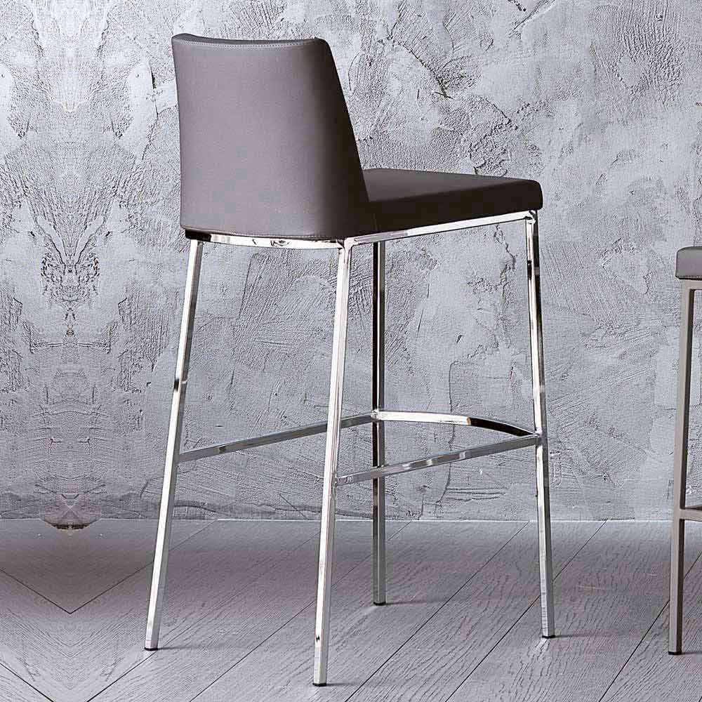 Hocker mit Metallgestell und Schaumstoffsitz, bezogen mit Titan-Ökoleder .
