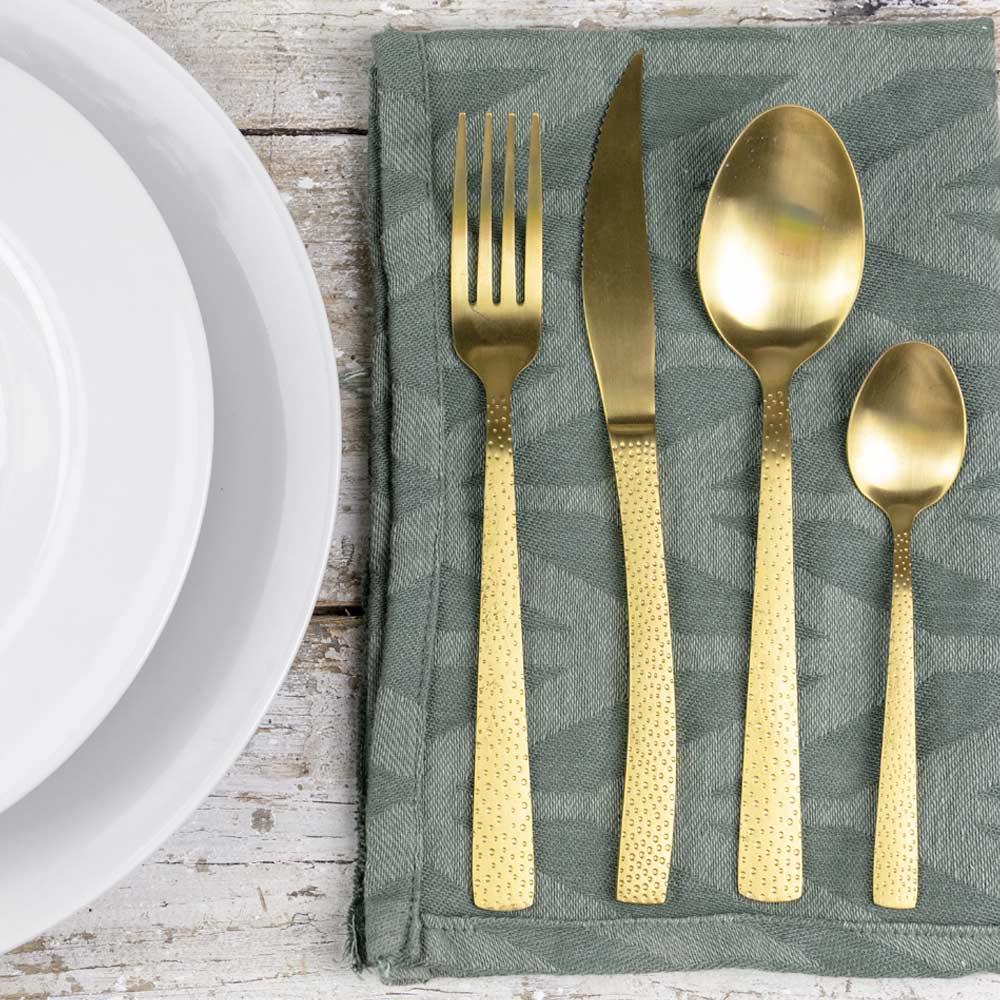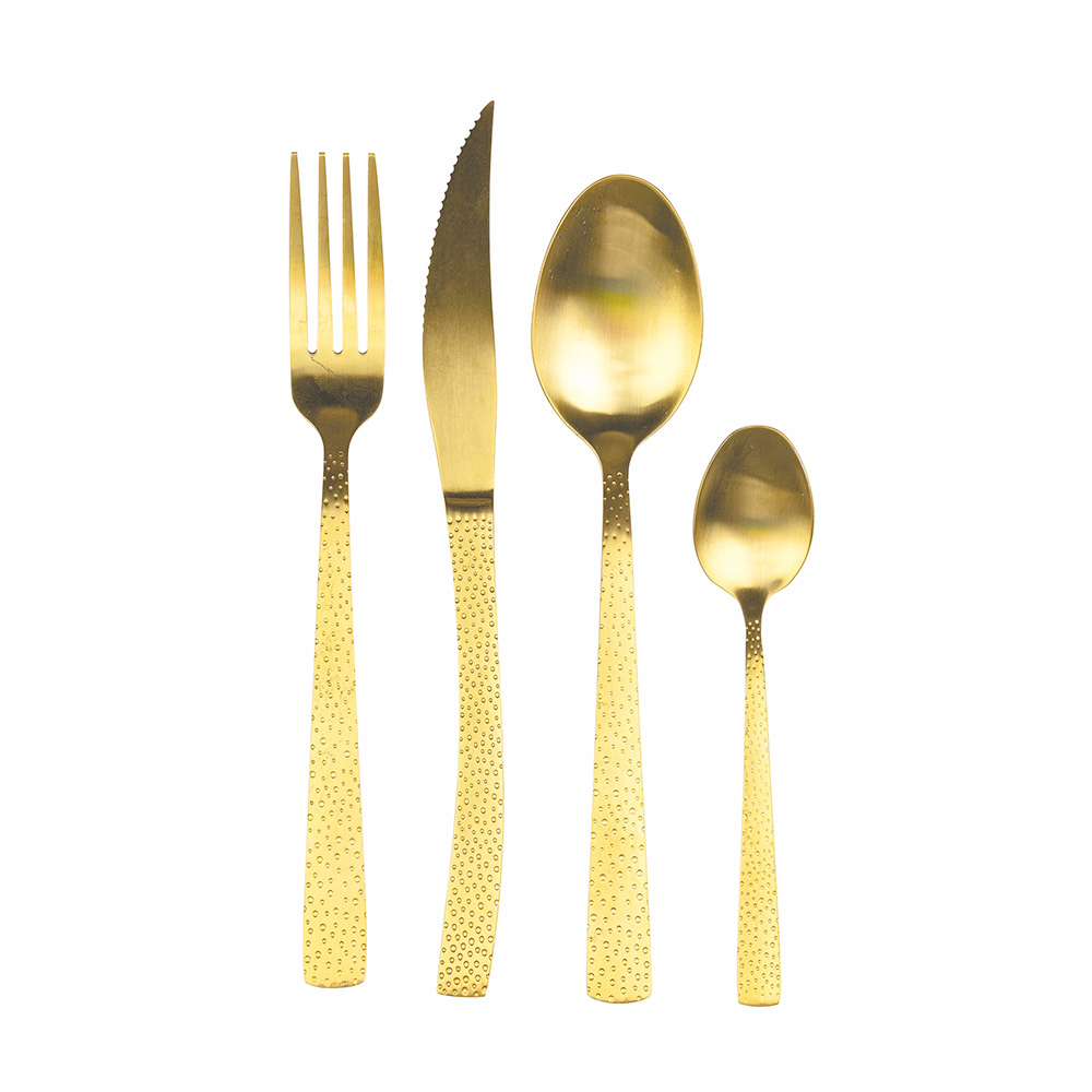 - Das Set besteht aus 6 Teelöffeln, 6 Löffeln, 6 Gabeln, 6 Messern.