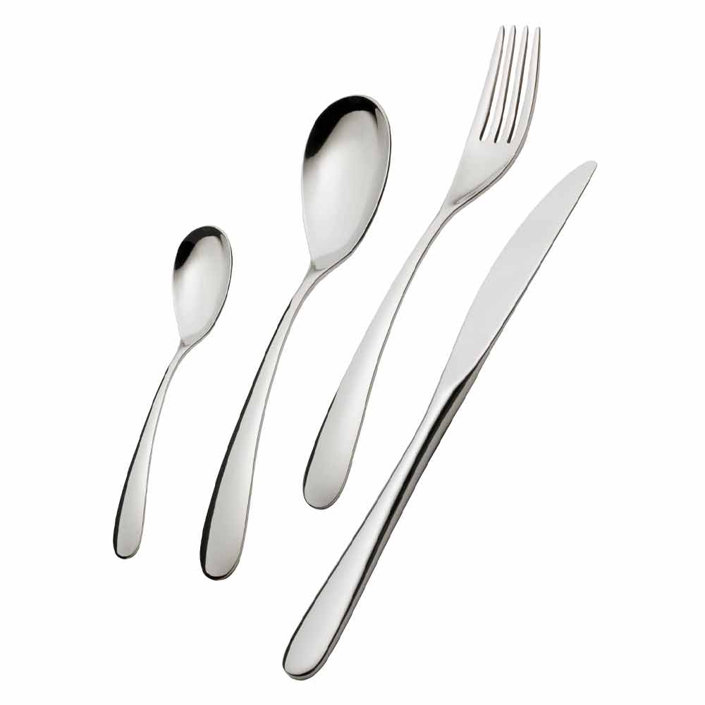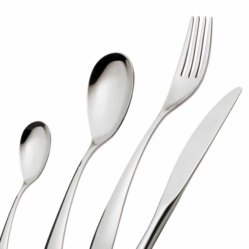 Besteck aus 24 Edelstahl mit modernem Design und glänzender Oberfläche, hergestellt in Italien.