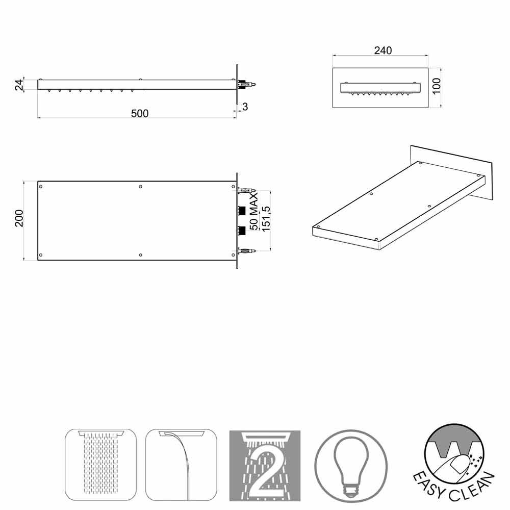 Duschkopf Manhattan aus Edelstahl mit zwei Strahlfunktionen: Regen "Wide-rain" und Wasserfall