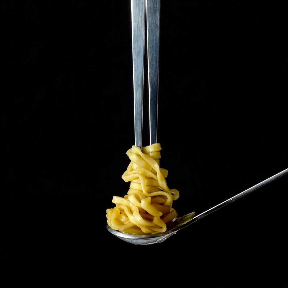 Die eigentliche Besonderheit des Besteck-Trios stellt das Mehrfach-Gabel-Stab-Zubehör dar , das durch einfaches Einlegen von 3 Gummibändern auf der Oberseite erhalten wird, so dass Sie aus Utensilien, die zum Essen orientalischer Speisen wie Sushi geeignet sind, ein ideales Werkzeug für mehr erhalten Westliche Gerichte wie Pasta.