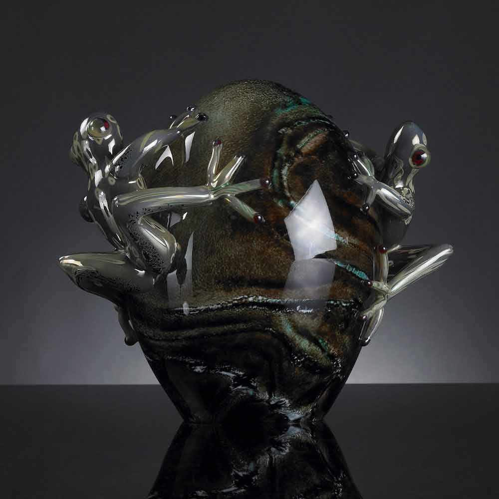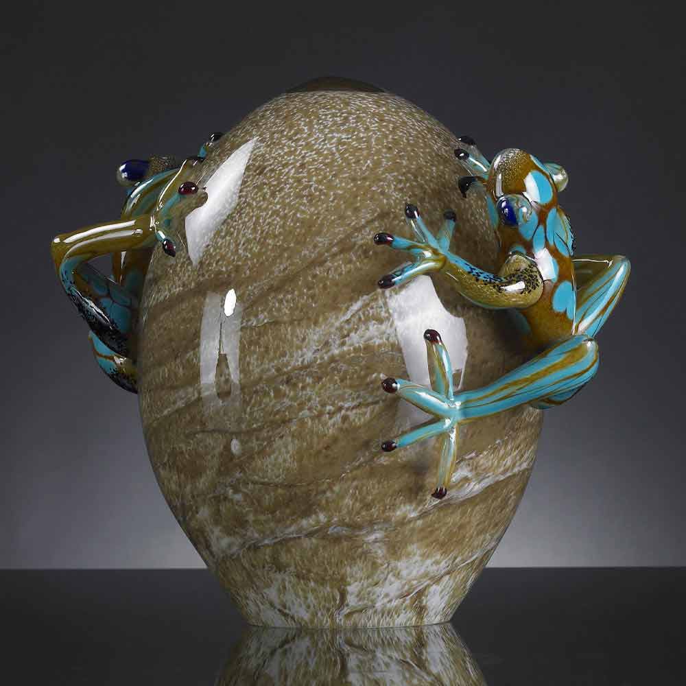 Dekorative Statue in Form von Fröschen auf Ei made in Italy aus