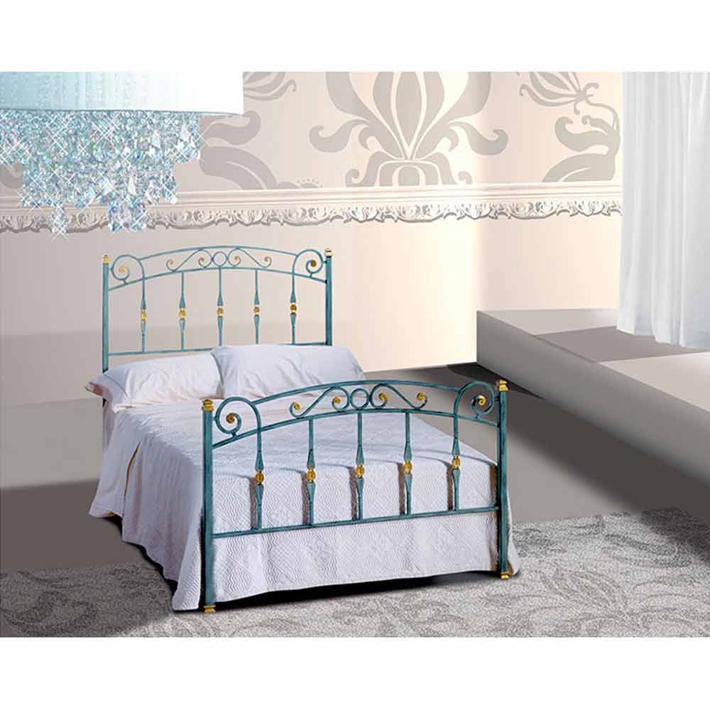 Das Bett aus Schmiedeeisen, in der Variante  Kopfteil mit Bettgestell sieht den Einbau von einem Lattenrost 120 x 190 vor, das direkt auf das Bettgestell hinein gelegt wird. .Für den Fall, dass Schönheitsveränderungen vorgenommen werden möchten. Dieses Modell kann dank seiner handwerklichen Herstellung, in der Höhe, Länge und Breite verändert werden.