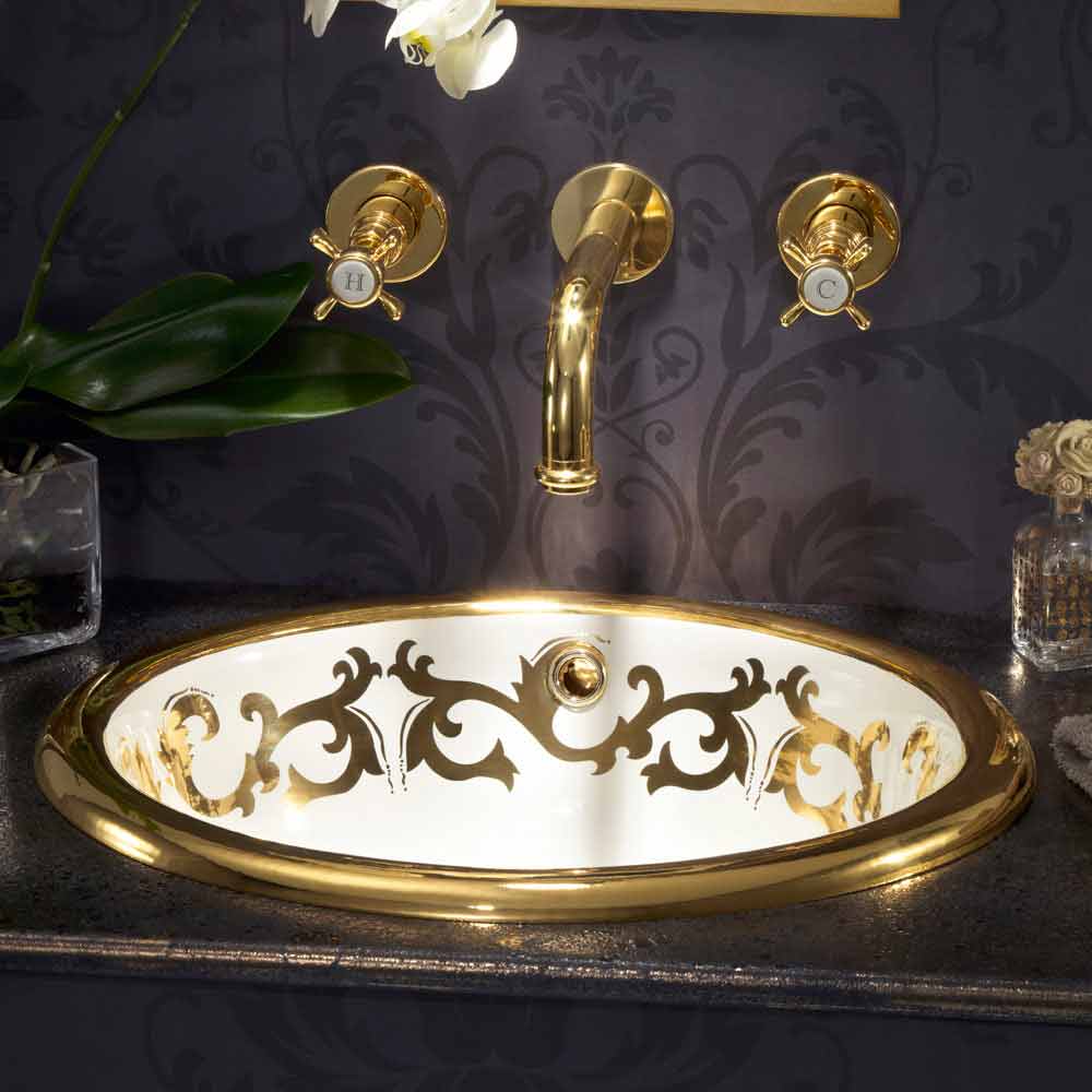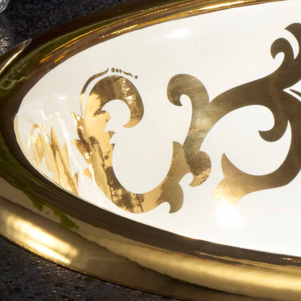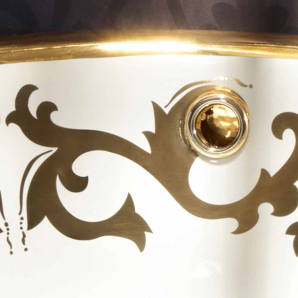 Einbauwaschbecken made in Italy aus handgefertigtem Fire Clay, verziert mit Goldstickerei und handbemalter 24 Karat Goldborte.