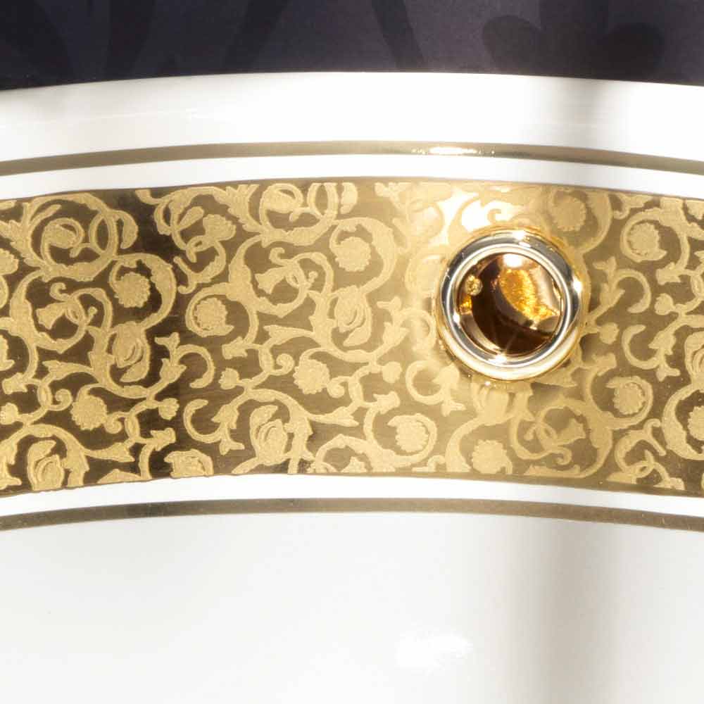 Einbauwaschbecken made in Italy aus handgefertigtem Fire Clay verziert mit einem Reliefgoldband, zwei Fäden und einer 24-Karat-Goldumrandung.