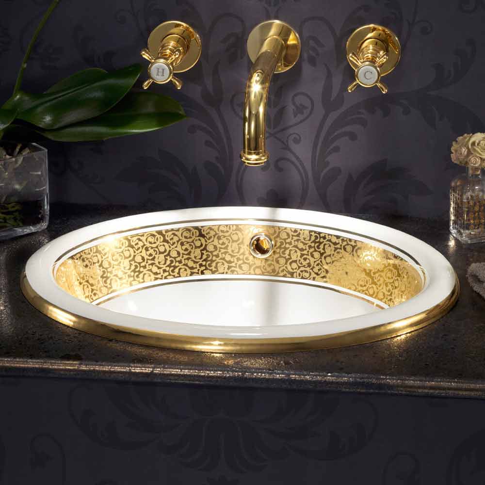 Einbauwaschbecken mit Mustern rund aus Fire Clay und Gold, Otis