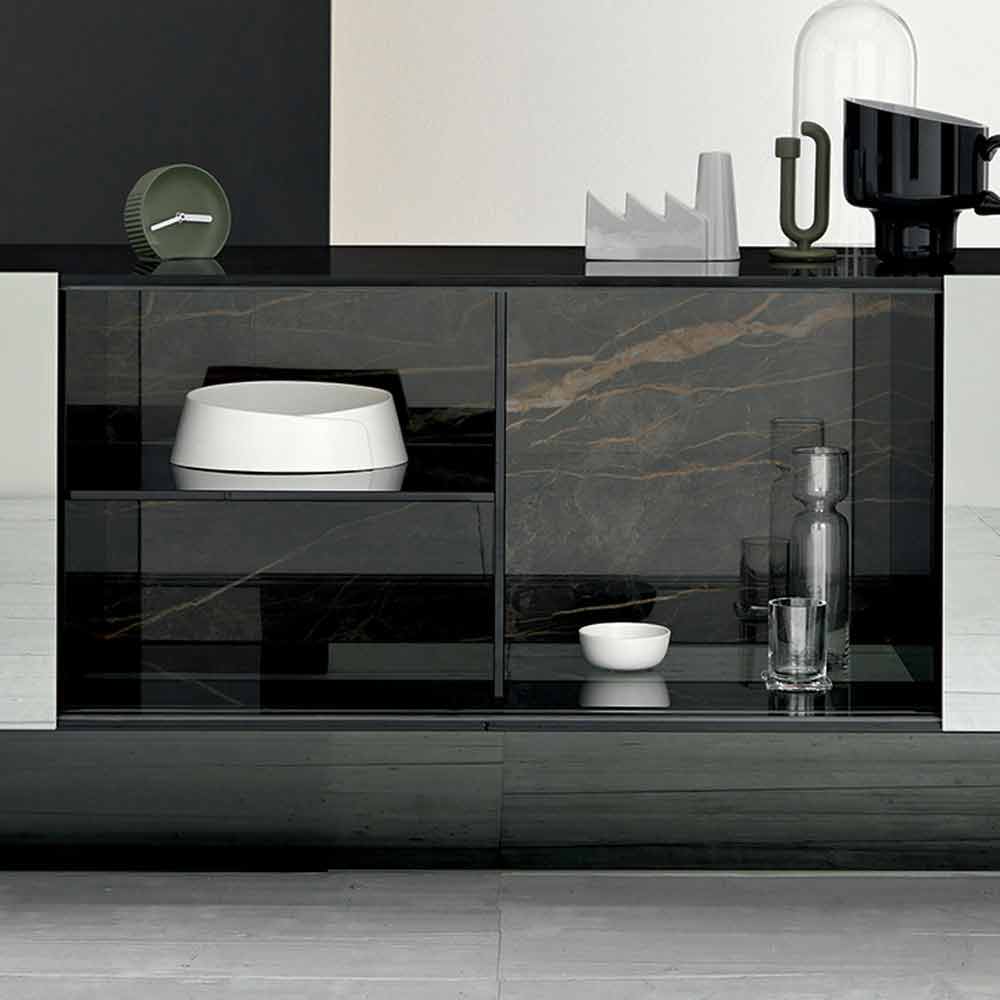 Das Wohnzimmer Sideboard Scocca wird in Italien von Hand mit hochwertigen Materialien realisiert.