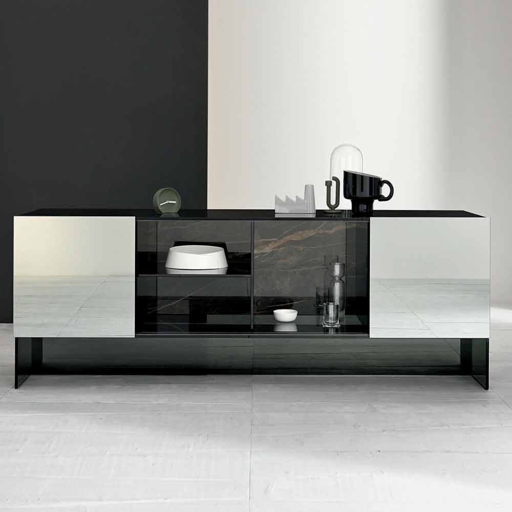 Modernes Eingangs-Sideboard mit Rauchglasstruktur und zwei Türen aus Rauchglas, von Hand in Italien realisiert.