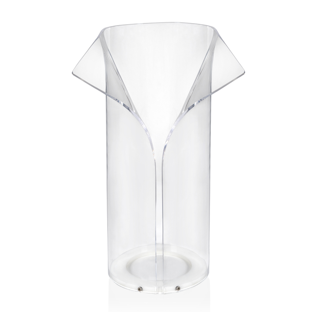 transparentem Acrylglas durch das Tiefziehen und Biegen einer Plexiglasplatte hergestellt.