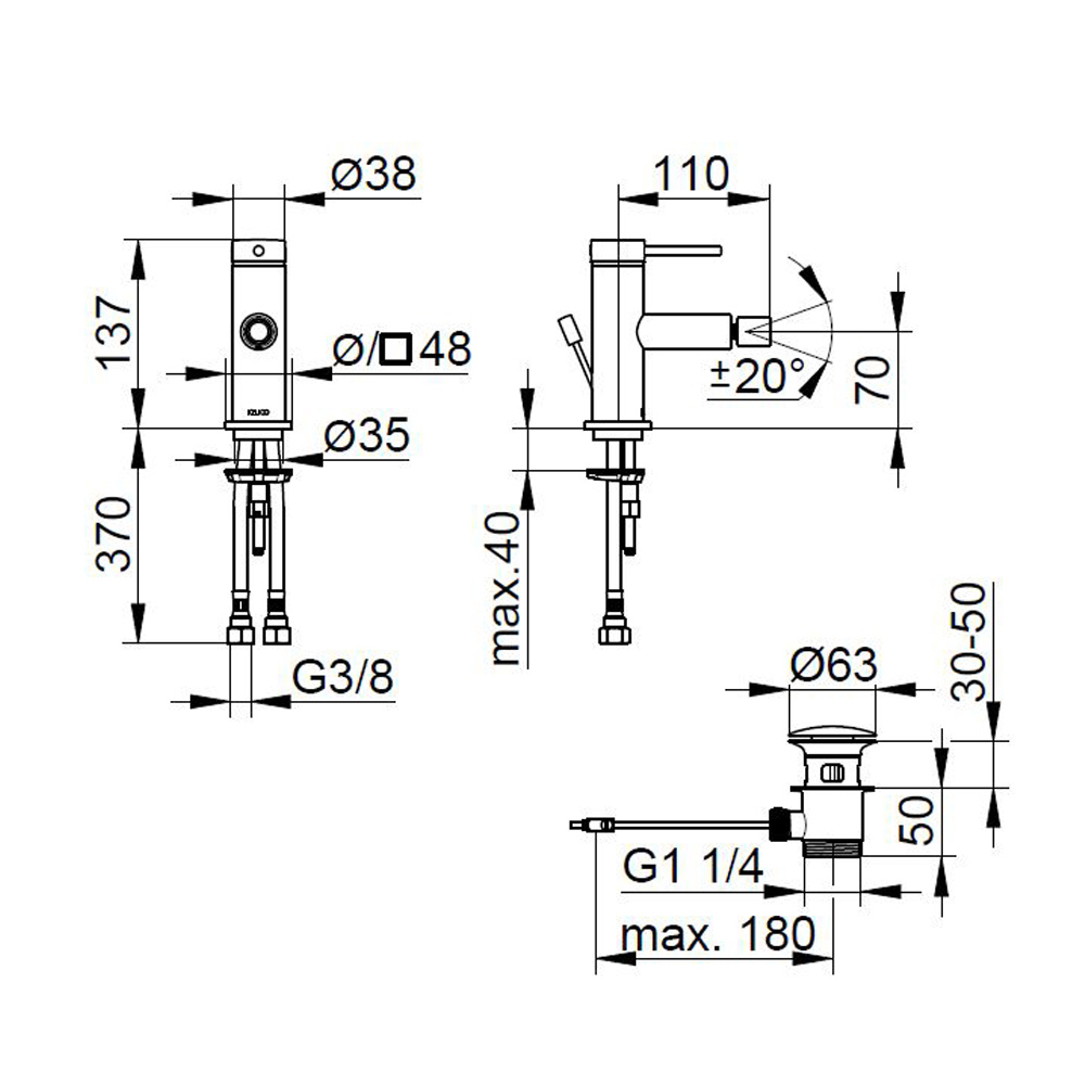 Einhebel-Bidetmischer hat ein Design mit perfekter Synchronität zwischen Griff und Auslauf.
