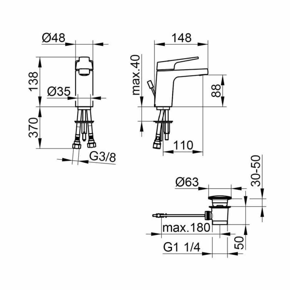 • mit 1 1/4 Zoll Pop-up-Abfall;