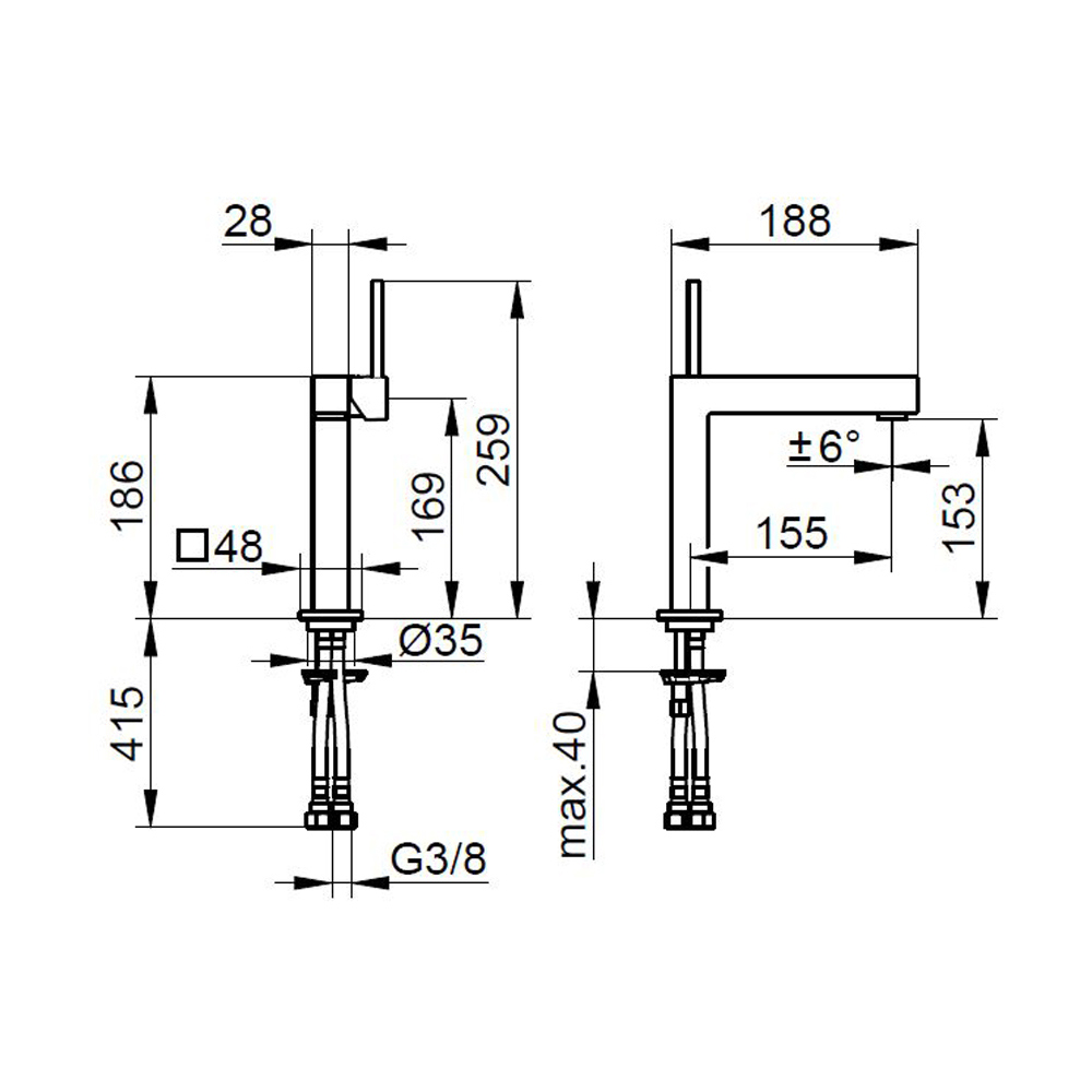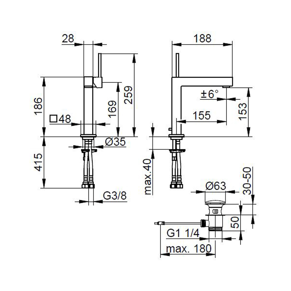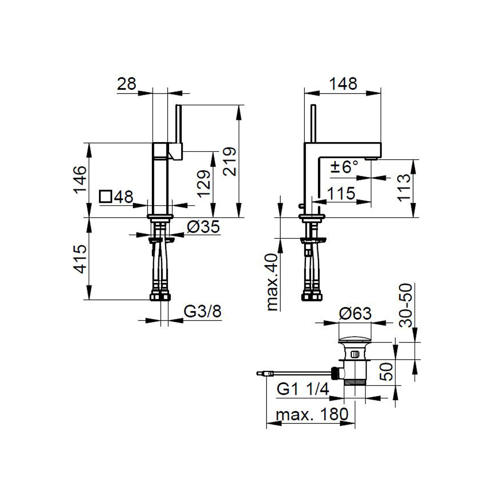 Einhebel-Waschtischmischer im quadratischen Design 3 Größen.