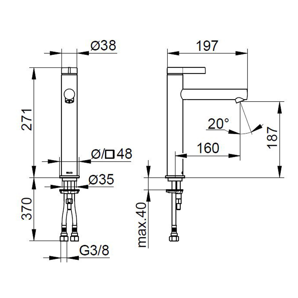 - Luftsprudler M 20x1, Druckrohre 570 mm, G 3/8 Zoll;