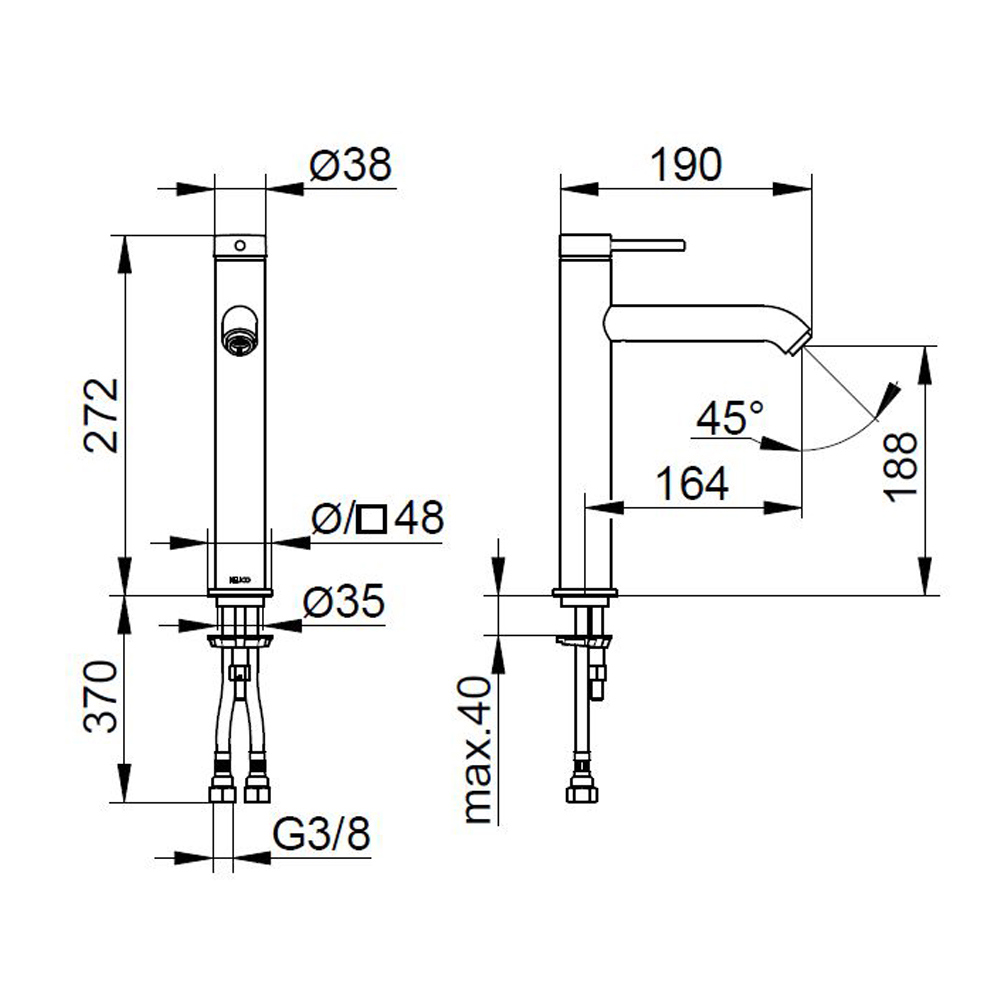 - 1-Loch-Befestigung mit Schnellmontagesystem;