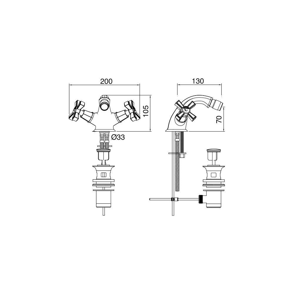 Silvana è eine winzige und praktische Mischbatterie für Einlochbidet mit Abfluss, aus Messing.