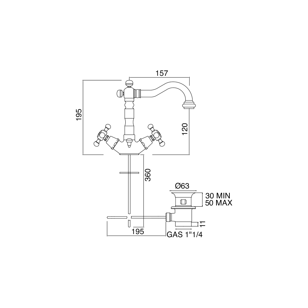 Einloch-Waschtischbatterie im Vintage-Design aus Messing Ursula, hergestellt in Italien.