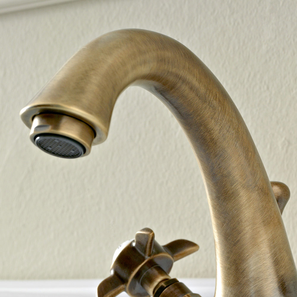 Einlocharmatur für klassisches Waschbecken aus Messing und Schmetterlingsgriffen - Miriano